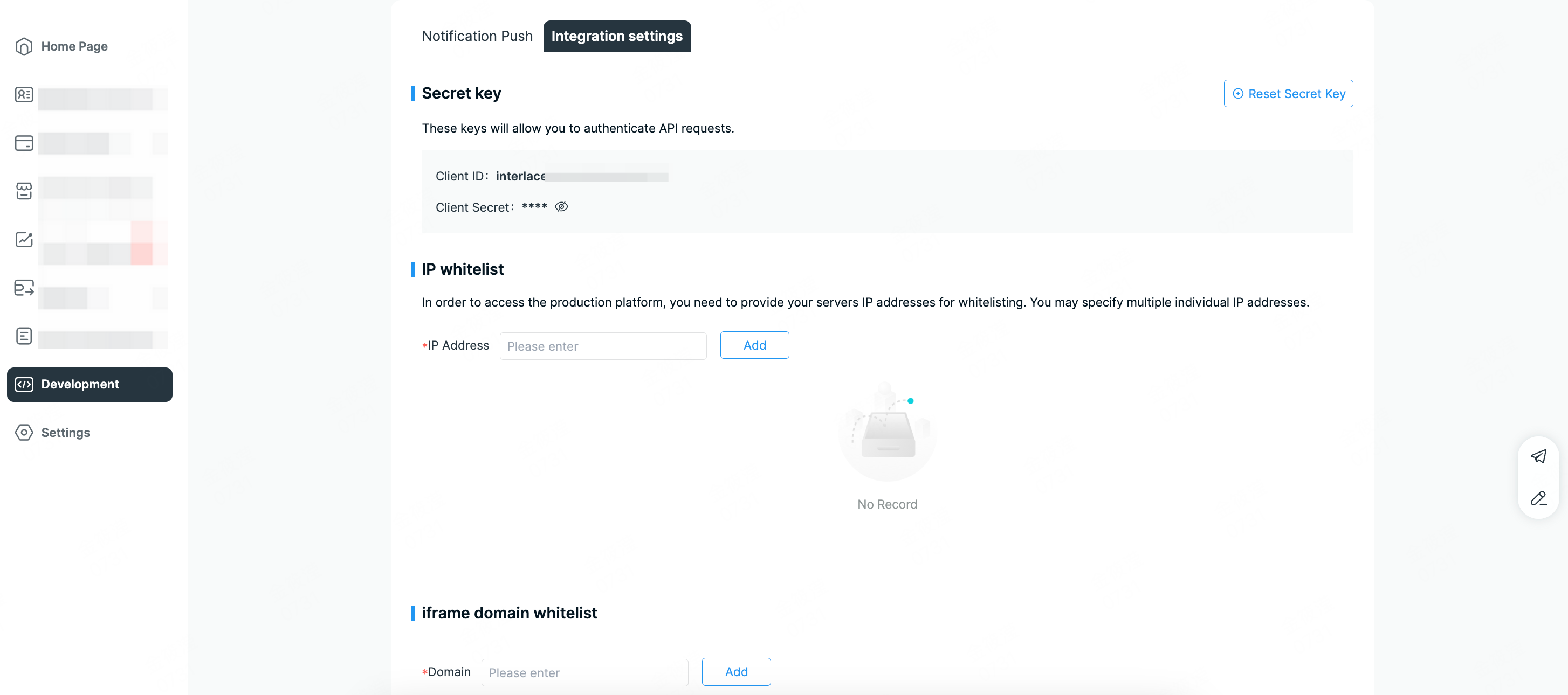 - The iframe URL must be pre-registered in the Interlace Portal → Development module.